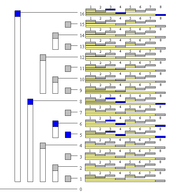 The basic idea is that any integer can be written in binary form as the sum of powers of 2. For example, 13 = 2^3 + 2^2 + 2^0. Let’s define input array as S[] and sum array as T[]. For each index idx in array S[], r is the position in binary form idx of the last digit 1 from left to right. In our example 13 = 1101, r = 3 and T[idx] is responsible for sums from 0 to idx - 2^r - 1 in S[] array, so S[0] + ... + S[1101] = T[1101] + T[1100] + T[1000]. The strategy here is to find the last digit 1, replace this digit with 0 and get the new index until the new index is all zeros. idx -= (idx & -idx) is used to isolate last digit 1 and get the next index in an amazingly simple way with less than 10 lines of code.